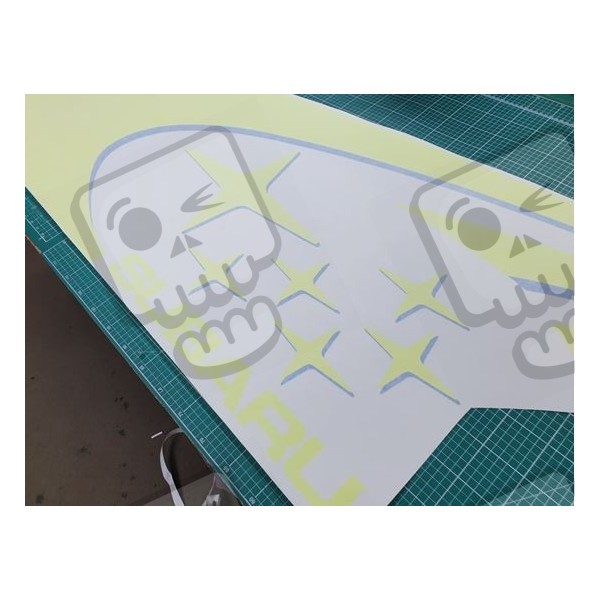 x2 full side two colour (Yellow and Light Blue drop shadow) "Subaru" Swoosh for near side