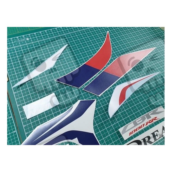 The decals are printed using newest and high quality printers Roland, using only original UV inks, insuring deep and perfect quality image. We use only quality outdoor vinyls from world's best brands. Then the decals are laminated with a flexible high gloss laminate to protect the print and color from scratches, dirt, fuel, oil and cleaning fluids and to give them a perfect glossy finish. Finally they are then contour cut to shape, supplied on their backing sheet ready to apply to your bike. You can be sure these decals will last!