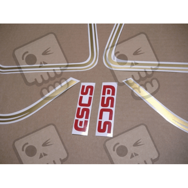 Logos of different sizes made to adapt to various parts of the bicycle or motorcycle.