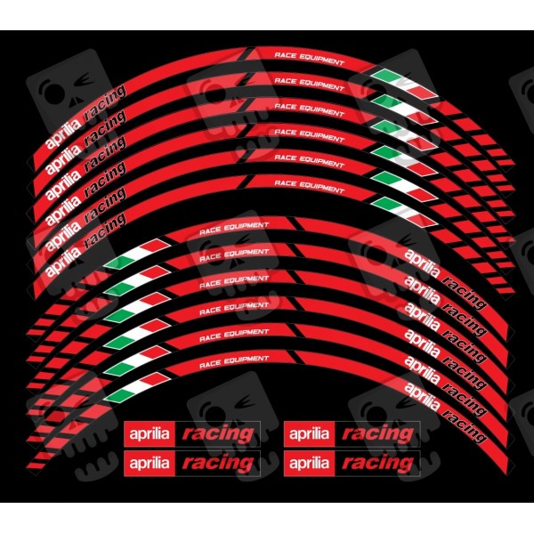 ADESIVOS Aprilia Racing Wheel rim stripes 12 pcs. stickers Laminated RSV Tuono Red (Produto compatível)